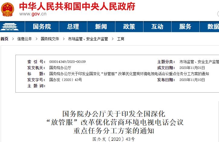 近日,國(guó)務(wù)院辦公廳印發(fā)《全國(guó)深化“放管服”改革優(yōu)化營(yíng)商環(huán)境電視電話會(huì)議重點(diǎn)任務(wù)分工方案》(以下簡(jiǎn)稱《方案》),對(duì)下一階段深化“放管服”改革優(yōu)化營(yíng)商環(huán)境工作作出部署。